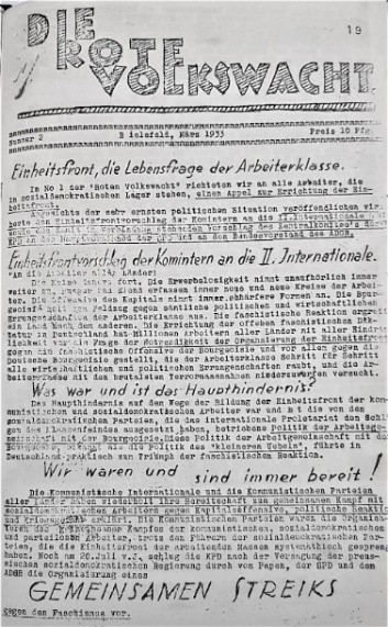 In Folge der Hausdurchsuchungen am 2. Februar 1933 arbeitet Paul Aude konspirativ. Er berichtet, er habe u.a. den Weitertransport von Zeitungen und anderen Materialien mit dem Kinderwagen gemacht. Sein Sohn (Gerhard, 3 Jahre alt) habe auf den Materialien gesessen.